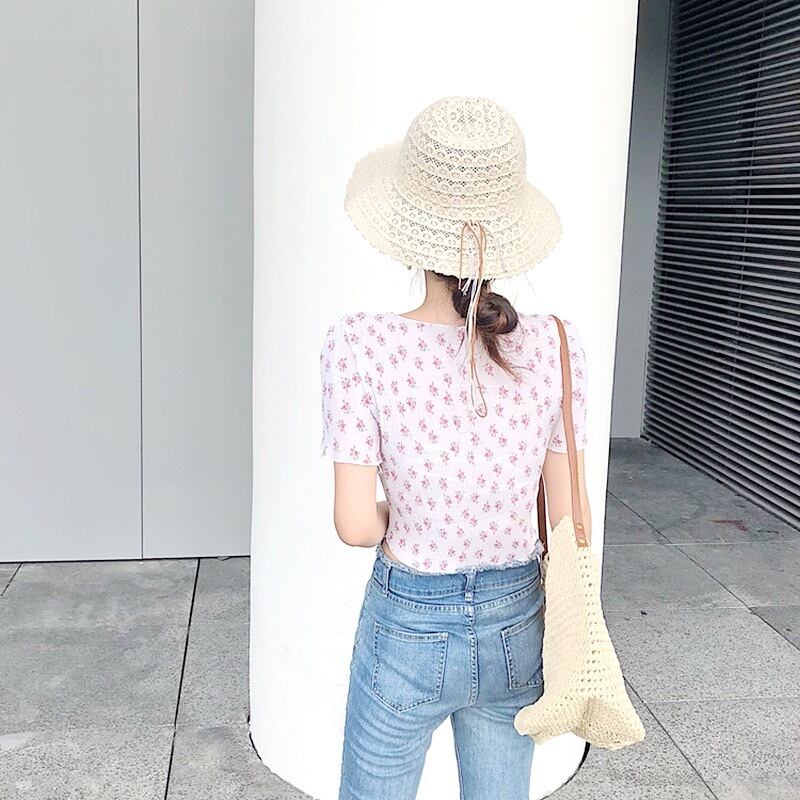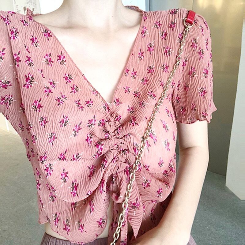 シフォンフラワー Vネック トップス 【2色】