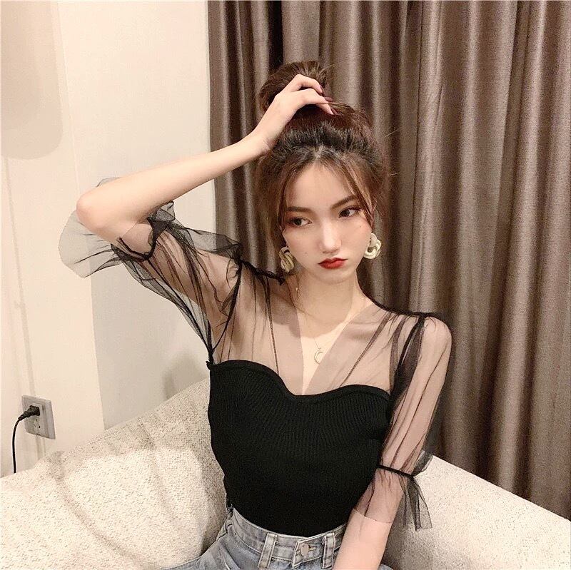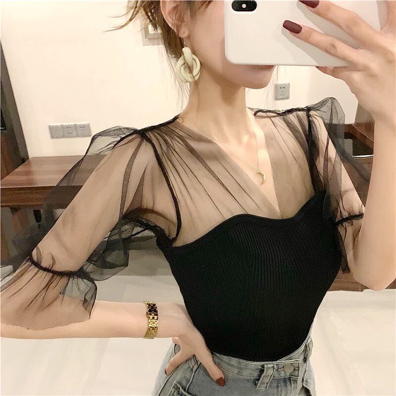 シースルー リブ トップス