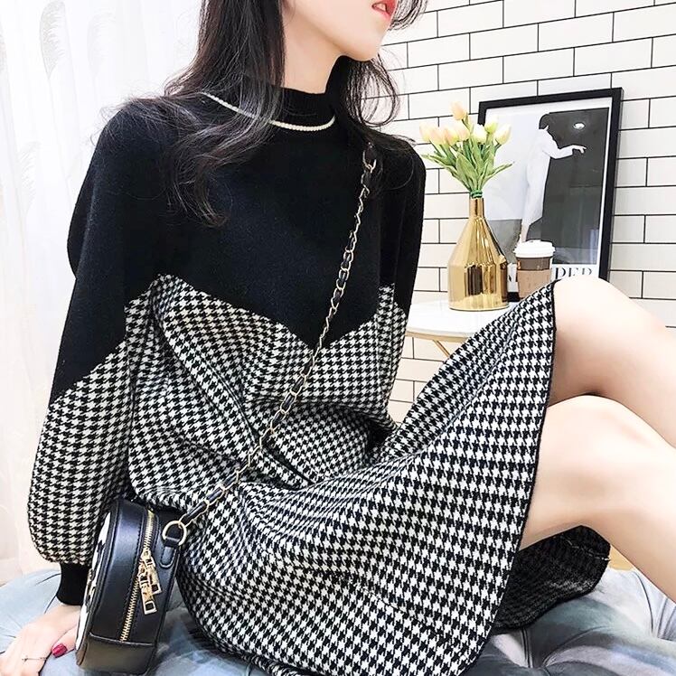 千鳥柄ニットプルオーバードレス