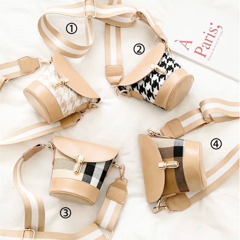 ミニバケット千鳥柄・チェック柄ショルダーバック【4色】