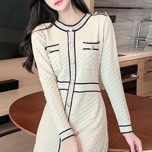 カジュアル長袖シルクニットボタンワンピース【3色】