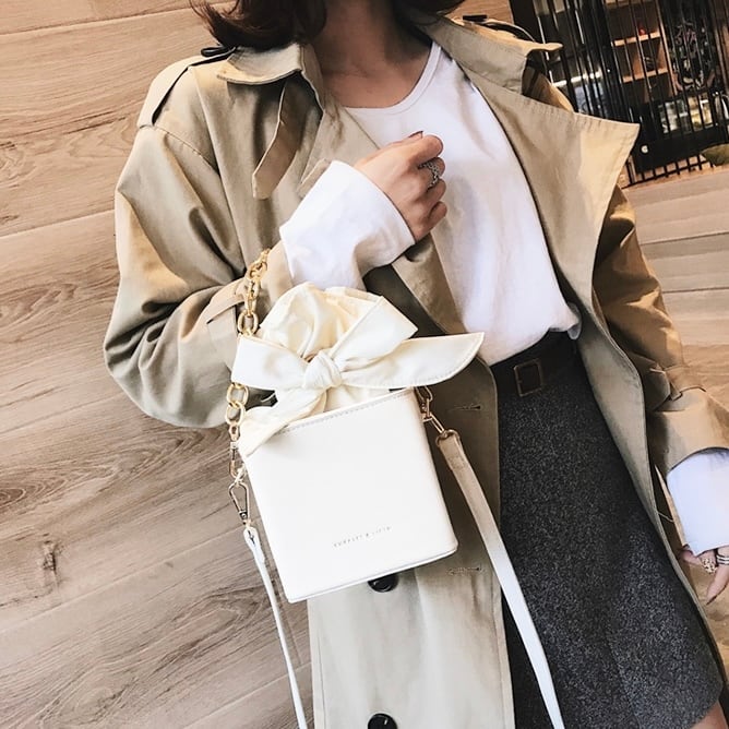 レザーリボン巾着スクエアショルダー2wayバック【3色】