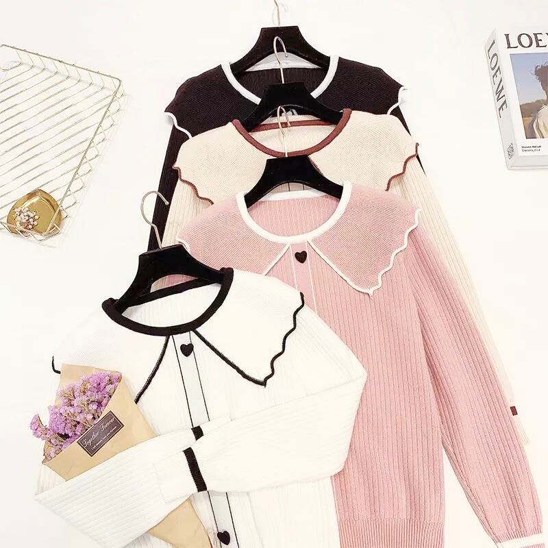 フリル襟ハートボタンニットセーター【5色】