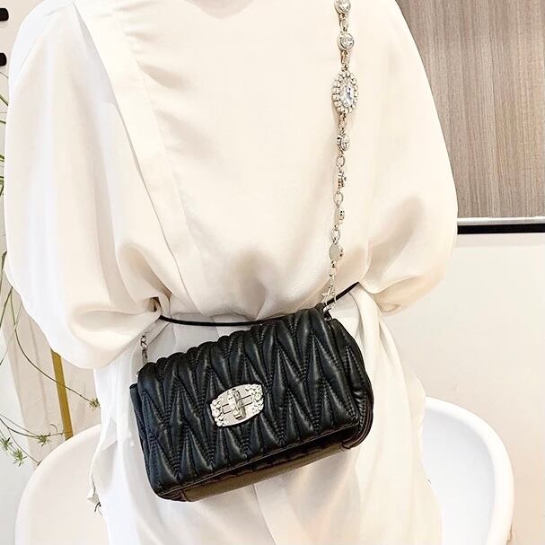 スクエアシャーリングフラップライトストーンショルダーバック【4色】