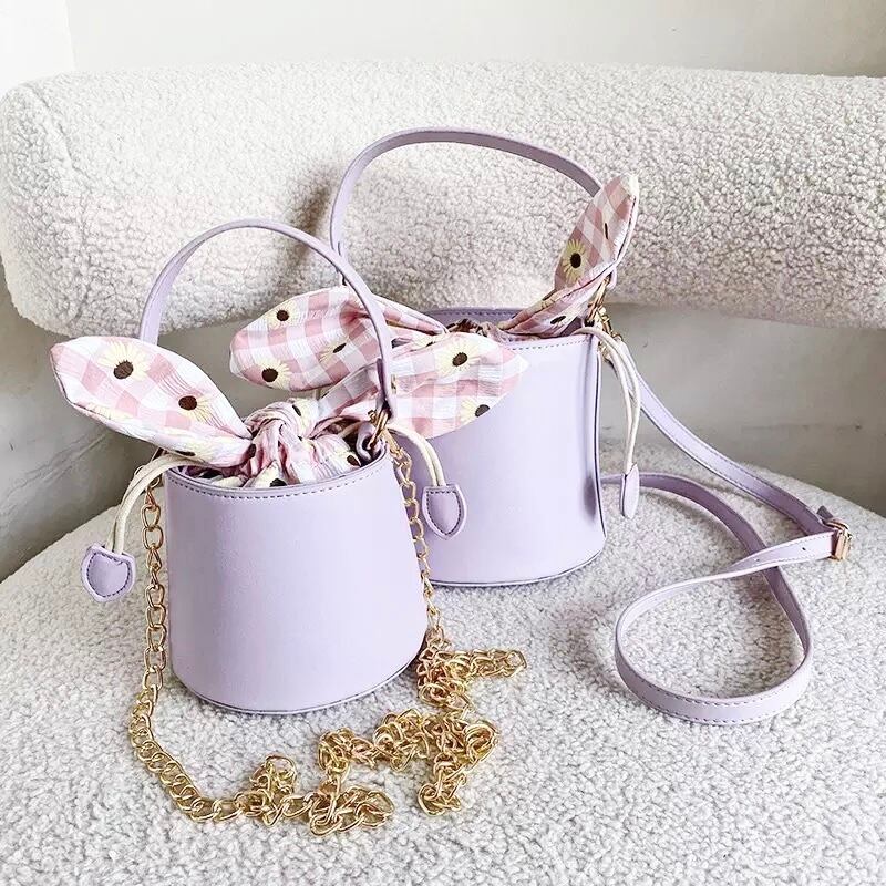 バケットチェックリボン巾着ショルダー2way バック【5色】