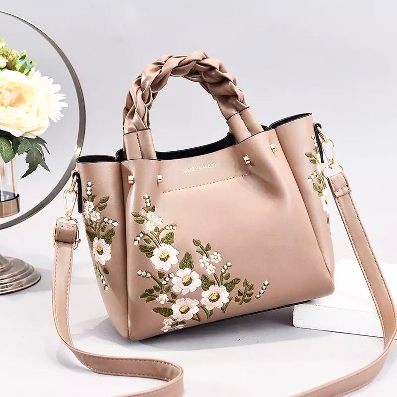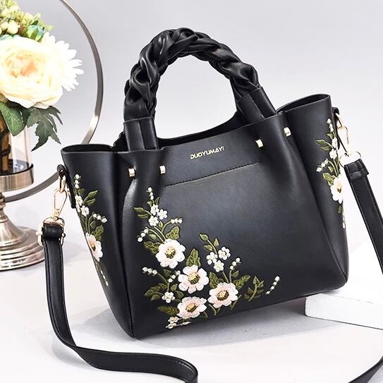 カジュアルフラワー刺繍レザー2way バック【5色】