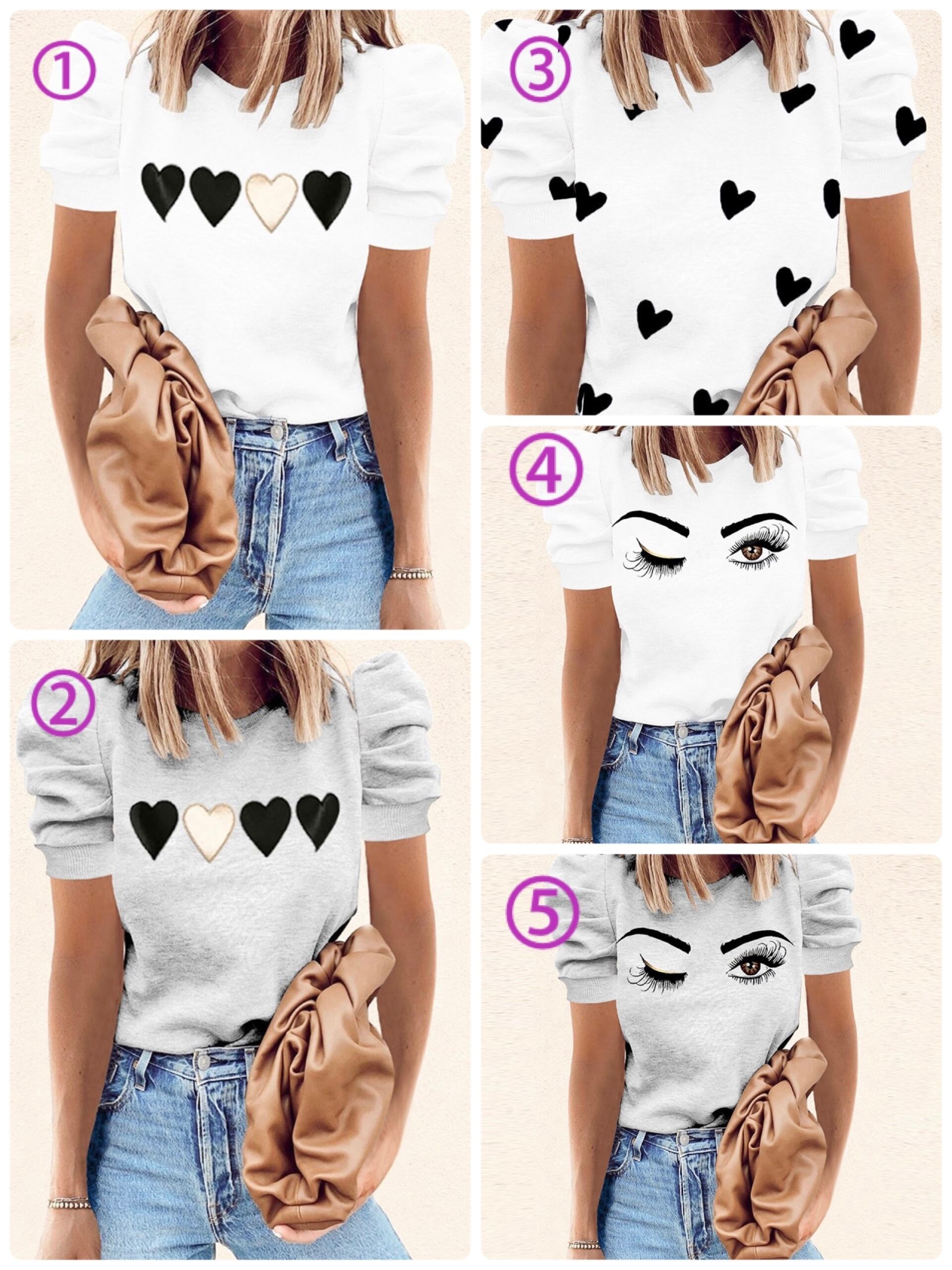 ハートプリントパフスリーブトップス【5色】