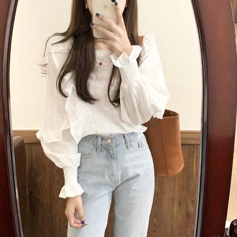 フリルスクエア襟長袖ブラウス