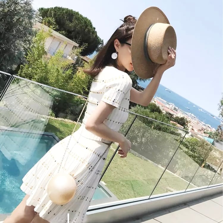 半袖ニットトップス+ミニスカートセットアップ【2色】