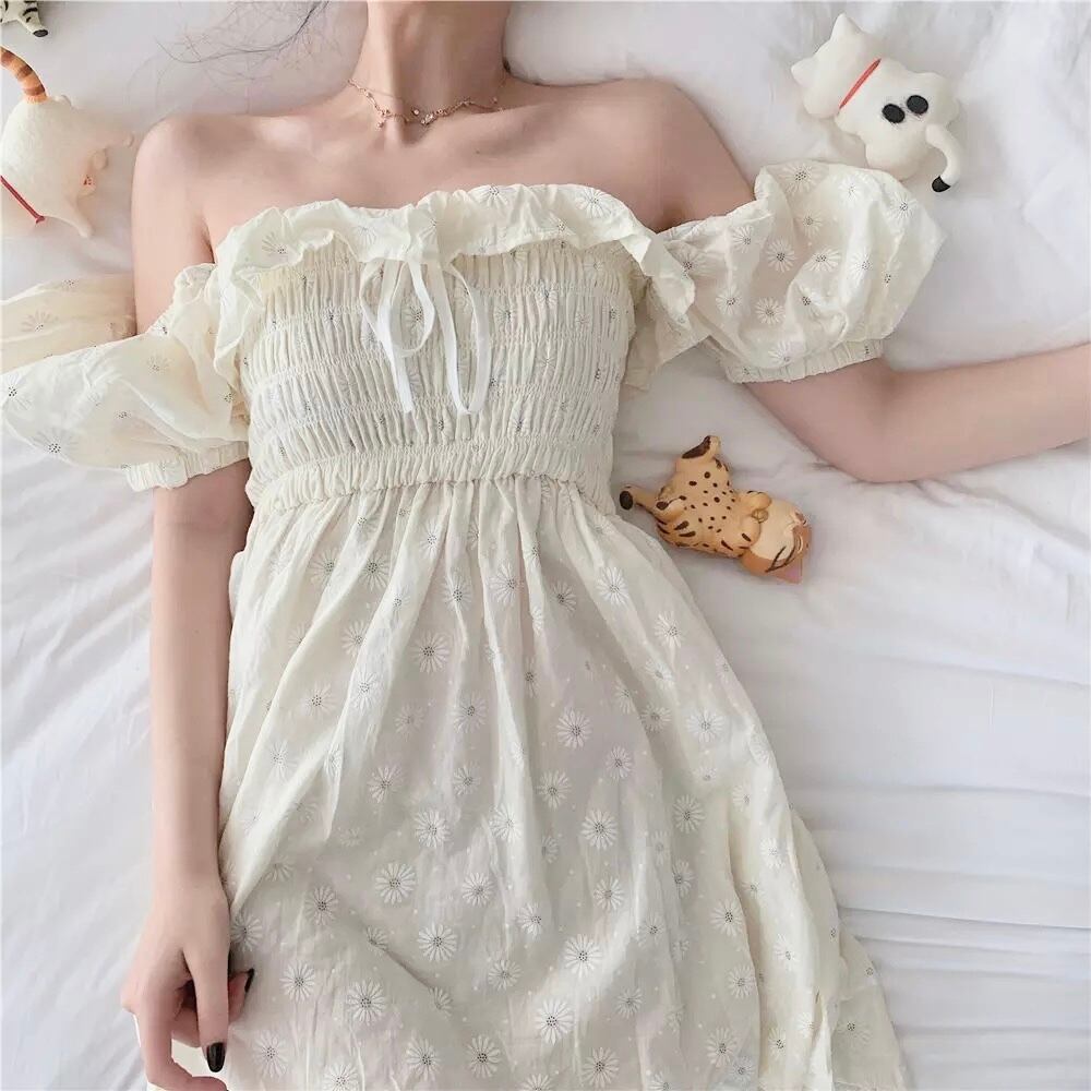 エレガントデイジーフラワーフリルワンピース