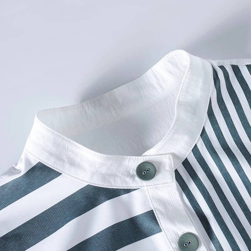 ストライプノースリーブブラウス+フレアスカートセットアップ