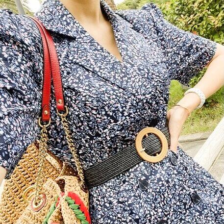 フローラルプリントベルト付きワンピース