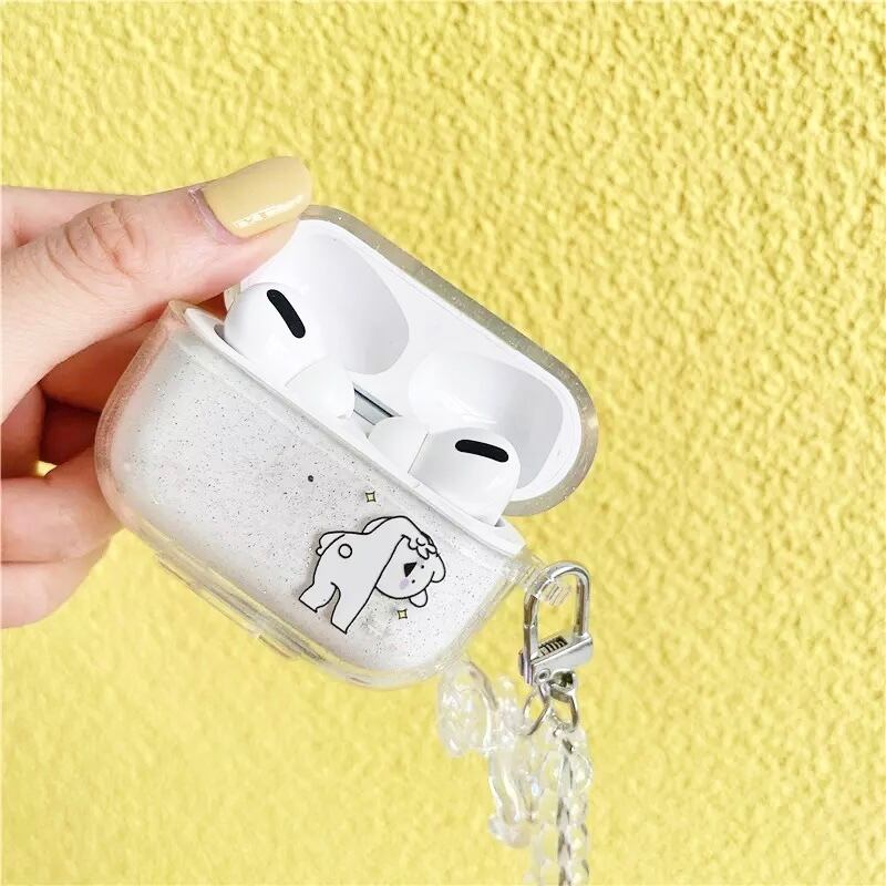 ラビットグリッターケースクリアベアーチャーム付きAir podsケース