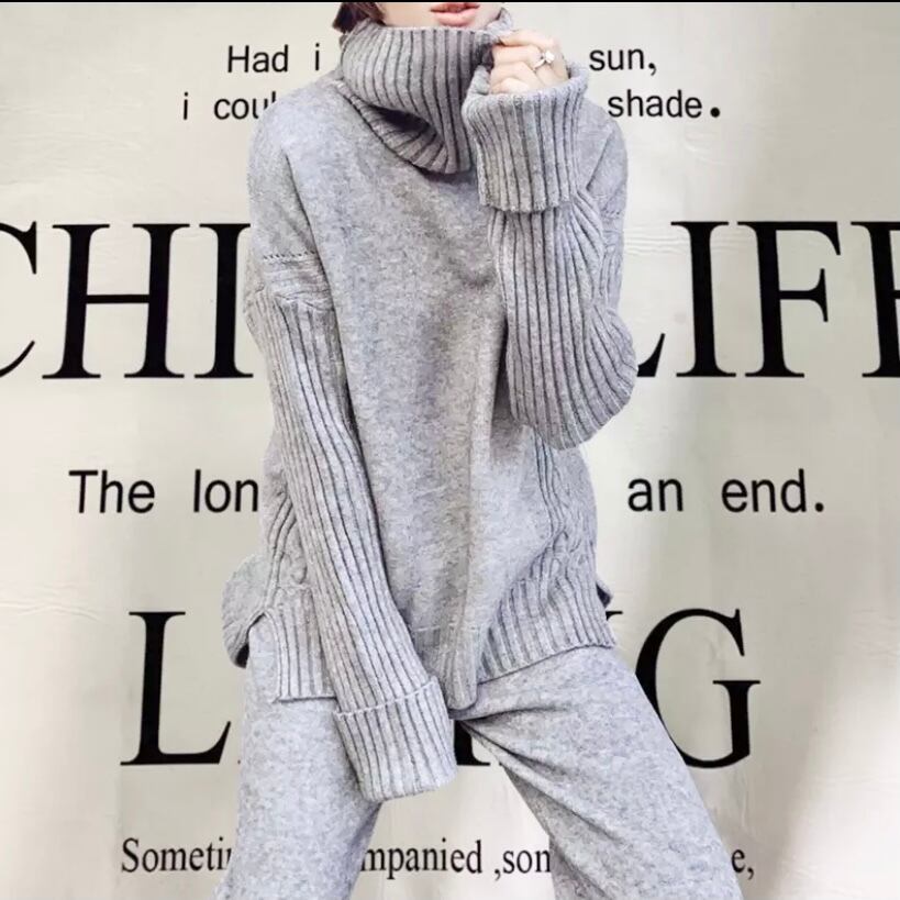 長袖タートルネックニットセットアップ【6色】