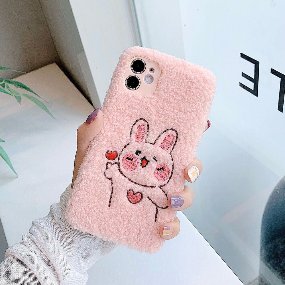 キュートモコモコ♡ベアー・ラビット刺繍ソフトiPhoneケース【2色】