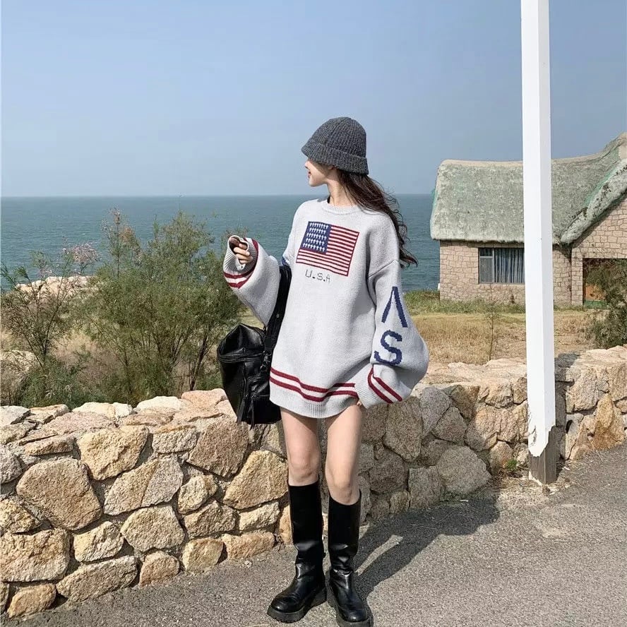 カジュアル長袖ニットルーズセーター【2色】