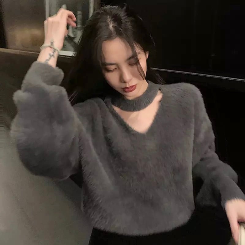 カジュアルミンクVネックランタンスリーブトップス【4色】