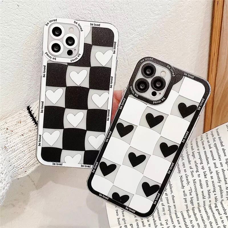マス目柄ハートクリアシリコンiPhoneケース【2色】