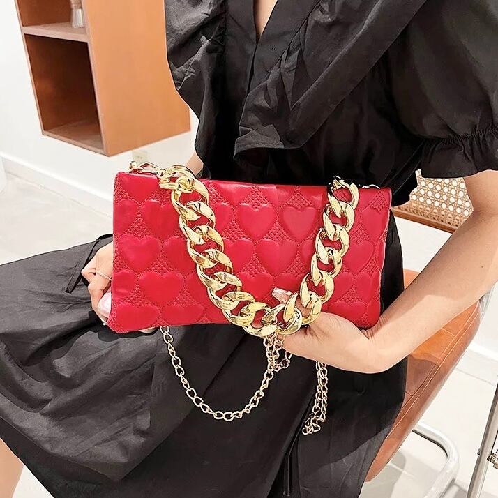 レザーハートチェーン付き2way バック【5色】