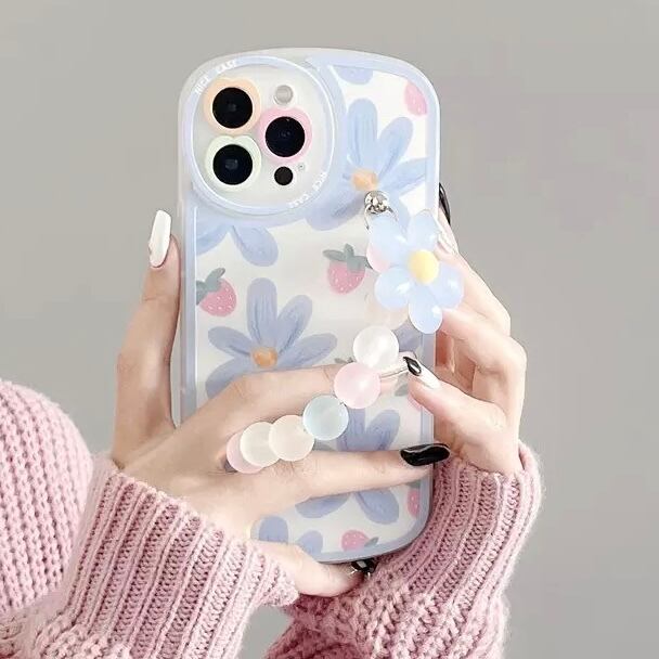 Flowerデザインキュートチャーム付きiPhoneケース【3色】