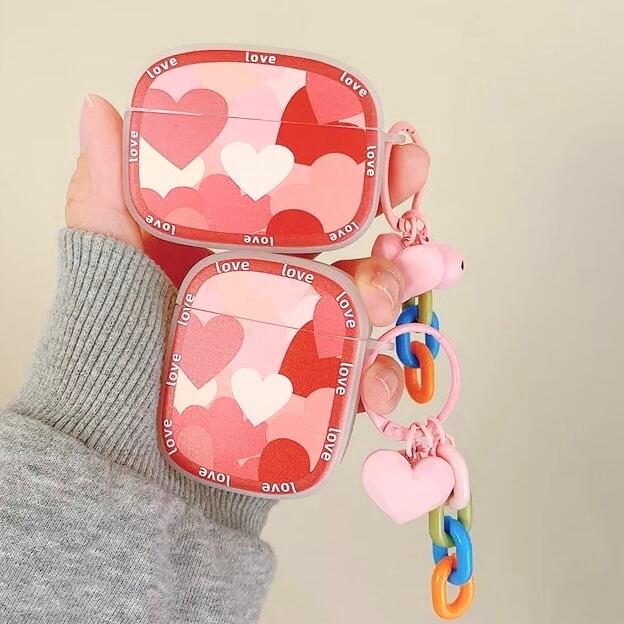 Loveハートチャーム付きシリコンAir podsケース【4色】