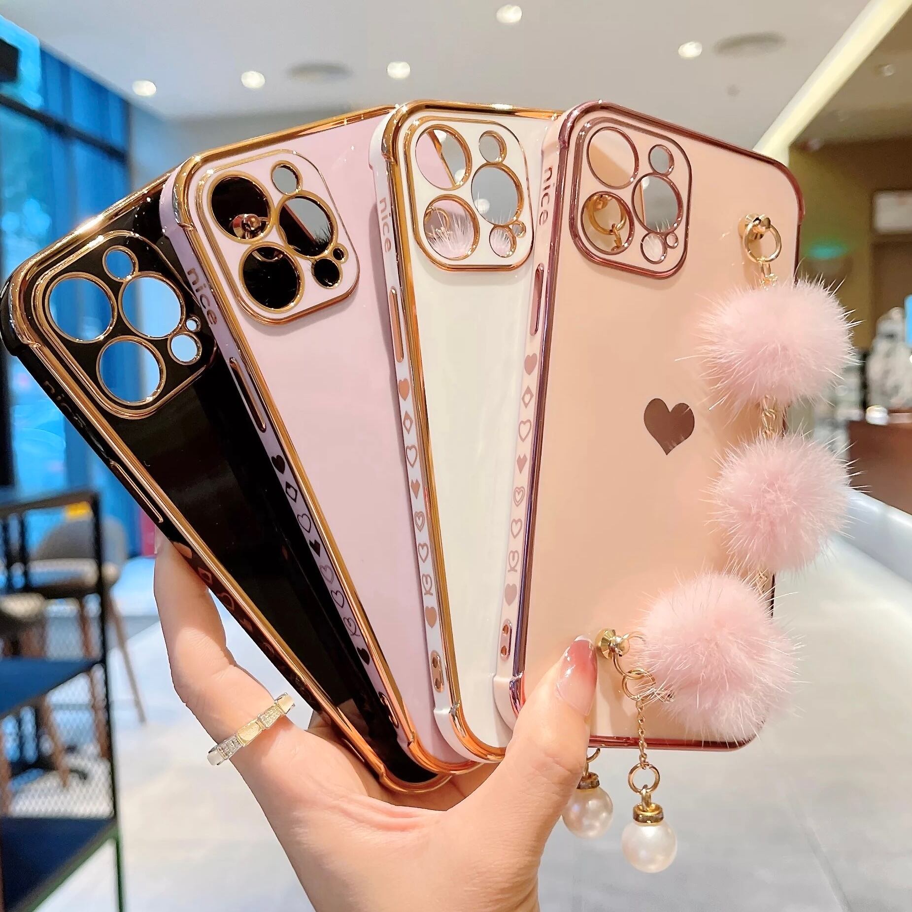 ハート メッキファーチャーム付きiPhoneケース【4色】