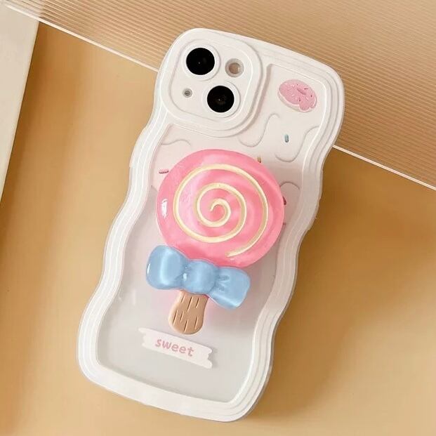 3Dロリポップデザインスタンド付きソフトiPhoneケース【5色】