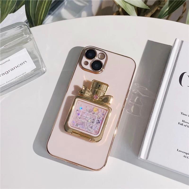 香水瓶スパンコール入りスタンドホルダー付きメッキiPhoneケース【7色】